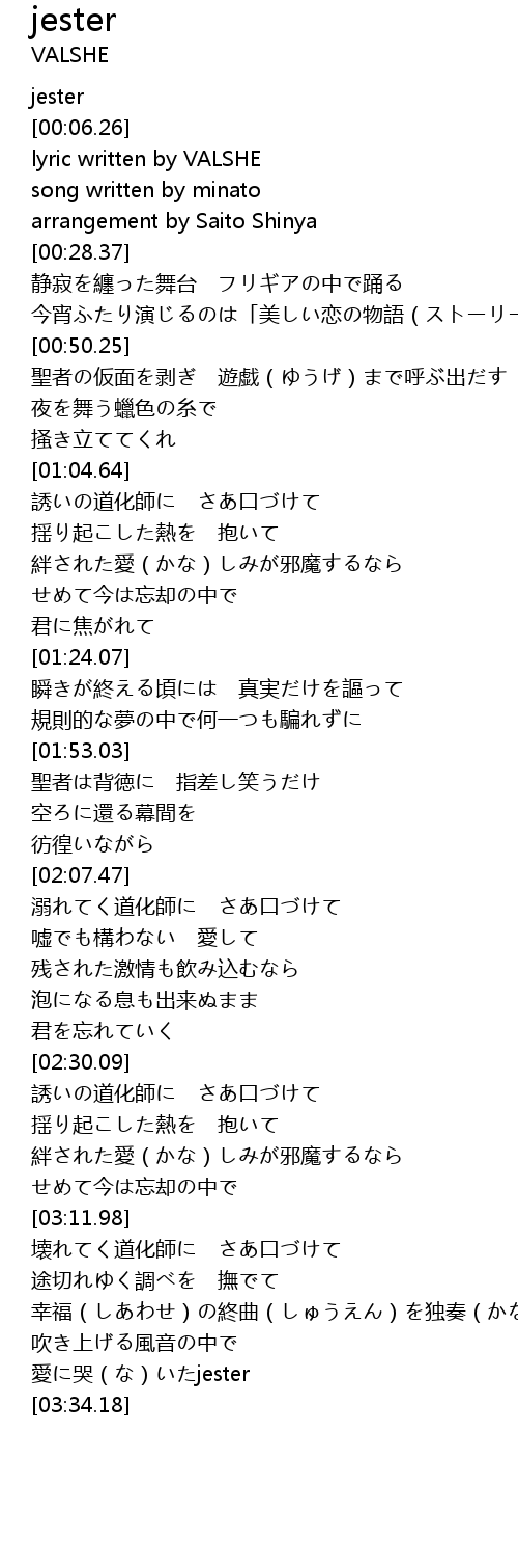 | [01:04.83] | 誘いの道化師に さあ口づけて |
