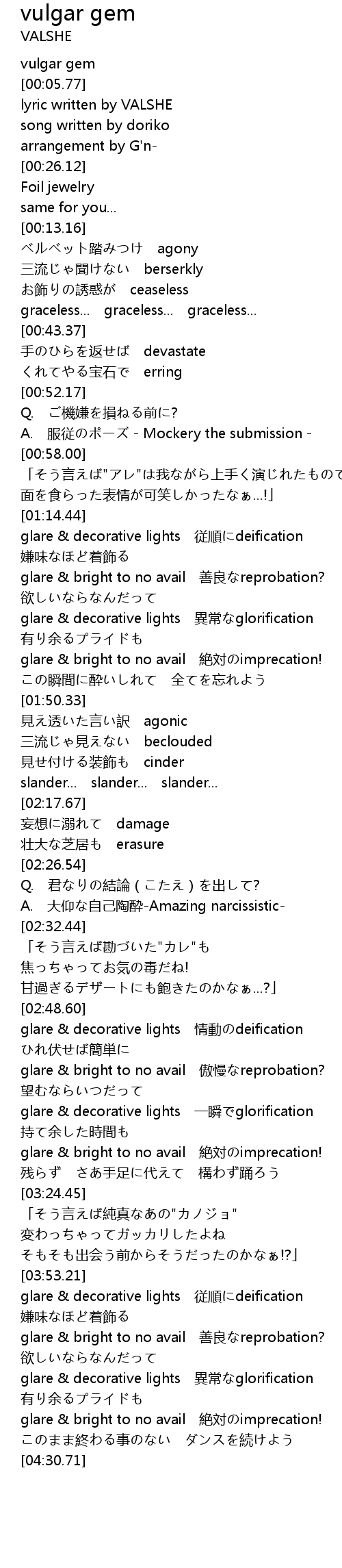 | [04:11.34] | glare & decorative lights 異常なglorification |