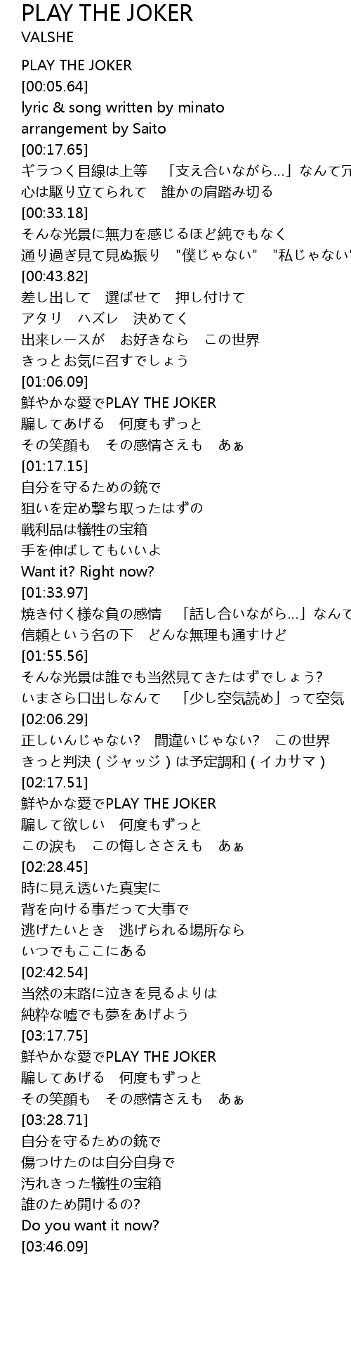 | [01:06.34] | 鮮やかな愛でPLAY THE JOKER |