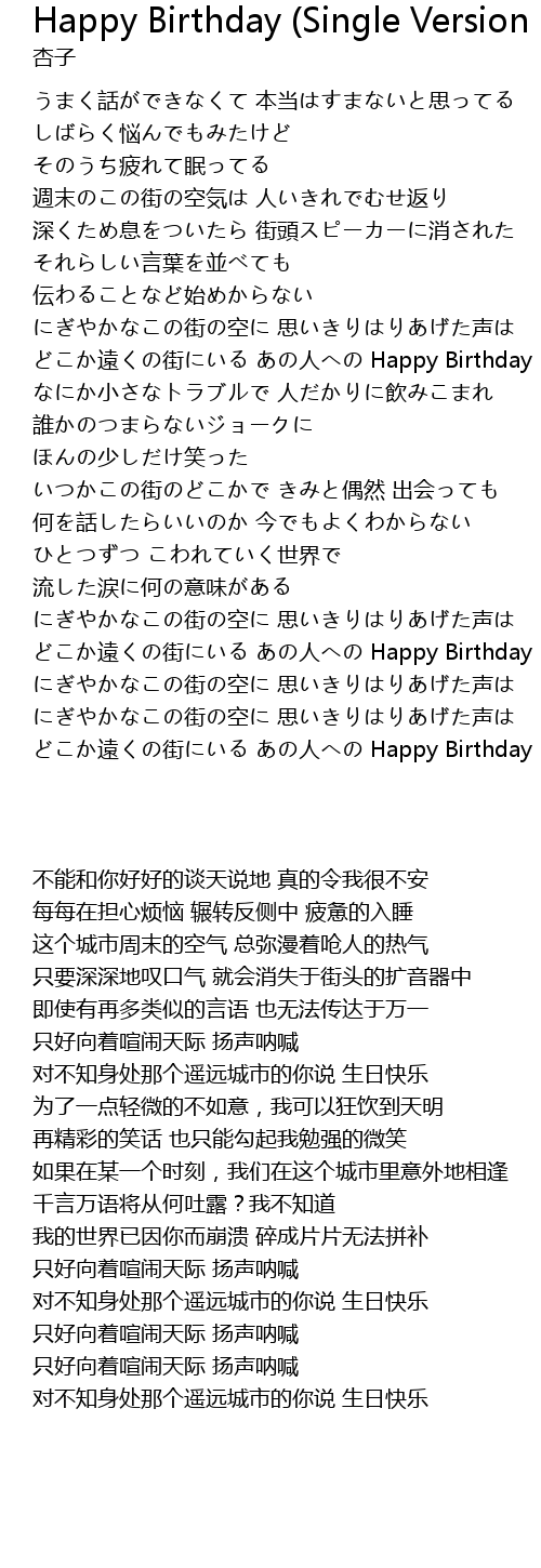 | [03:54.180] | どこか遠くの街にいる あの人への Happy Birthday |