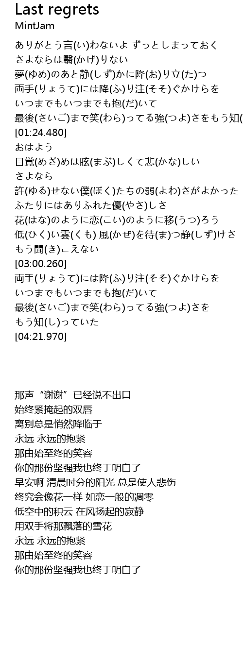 | [00:01.290] | ありがとう言(い)わないよ ずっとしまっておく |
