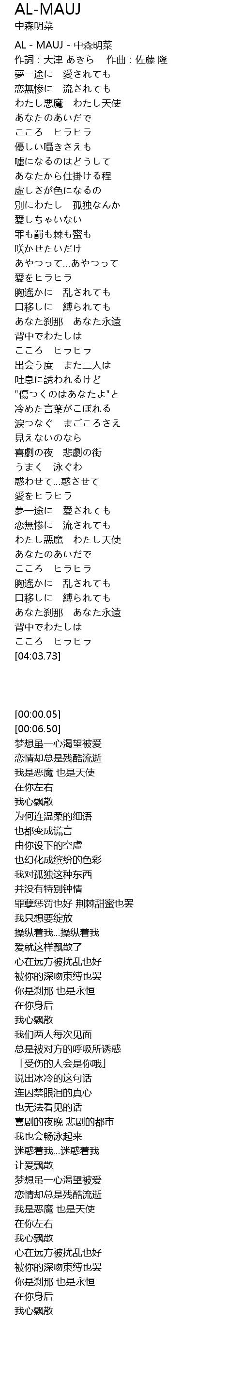 | [00:00.05] | AL-MAUJ - 中森明菜 |