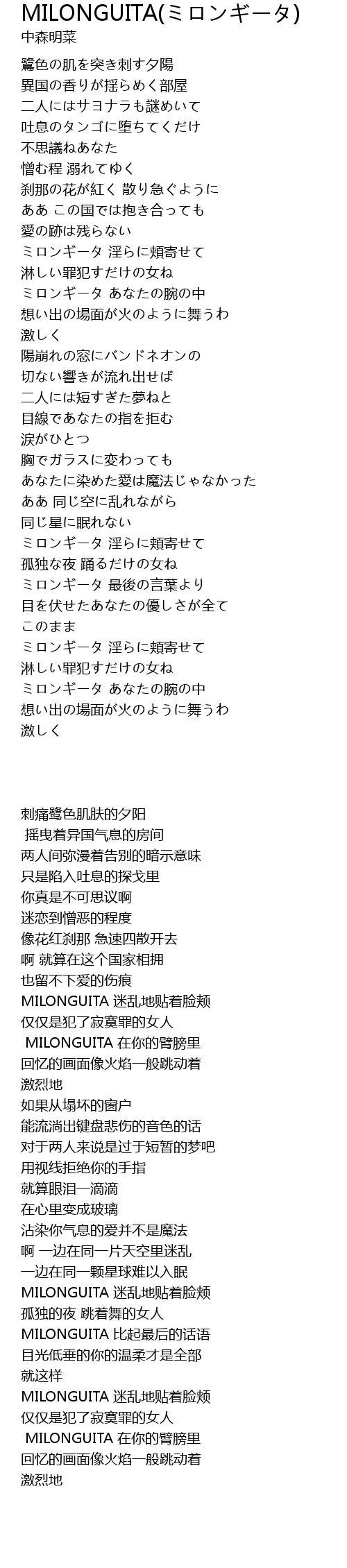 | [03:03.96] | ミロンギータ 淫らに頬寄せて |