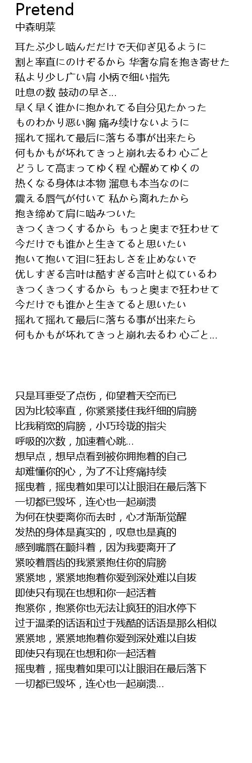 | [01:49.58] | 热くなる身体は本物 溜息も本当なのに |