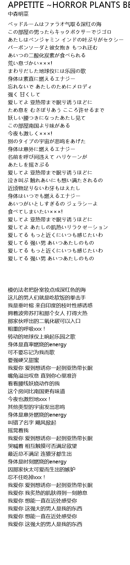 | Song | APPETITE ~HORROR PLANTS BENJAMIN~ |