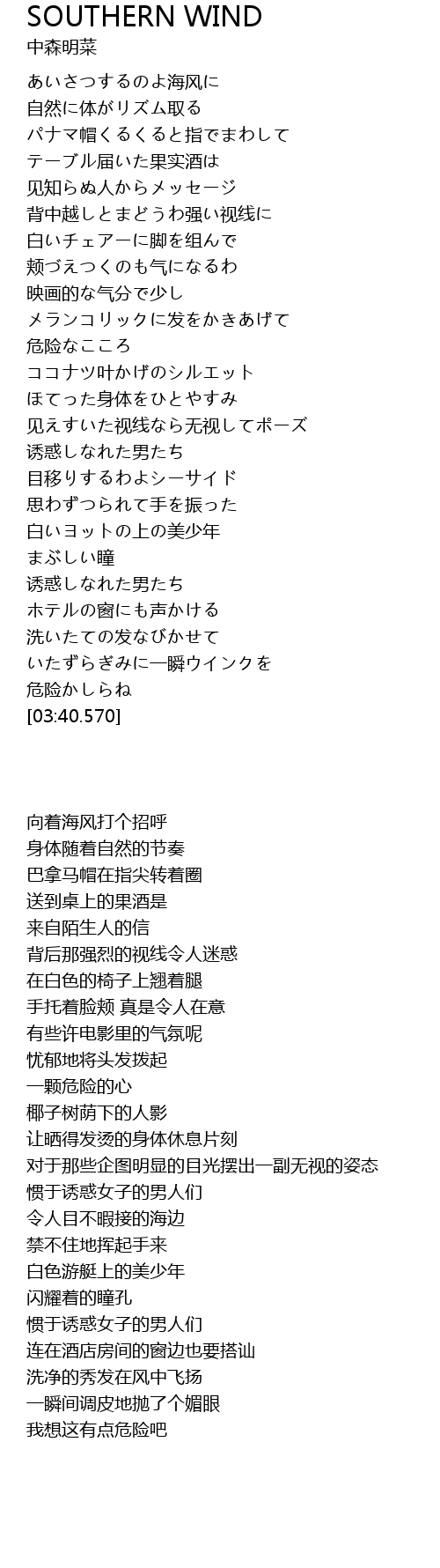 | Song | SOUTHERN WIND |