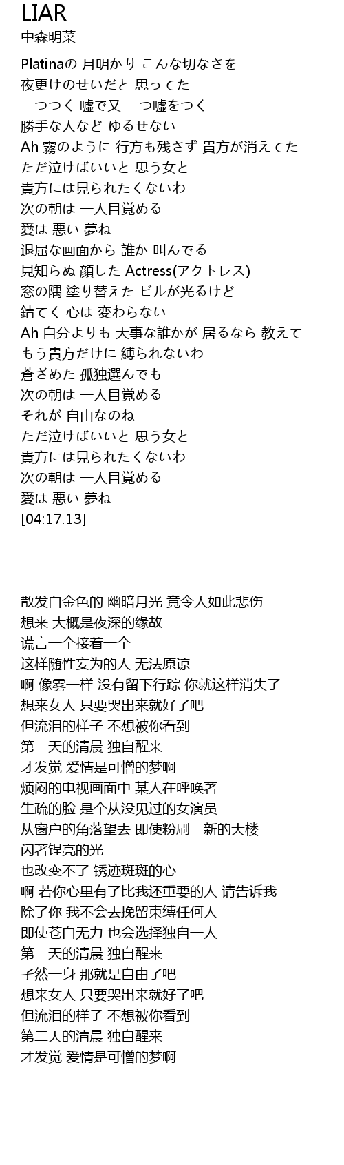 | [00:30.17] | Platinaの 月明かり こんな切なさを |