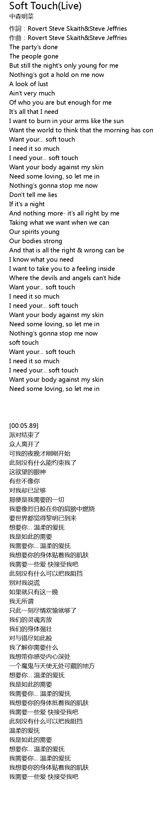 | [00:05.89] | 作詞:Rovert Steve Skaith&Steve Jeffries |