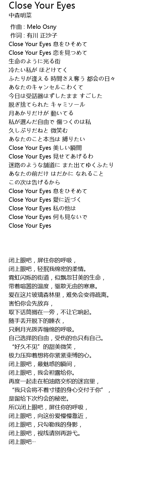 | [02:02.11] | Close Your Eyes jiàn |