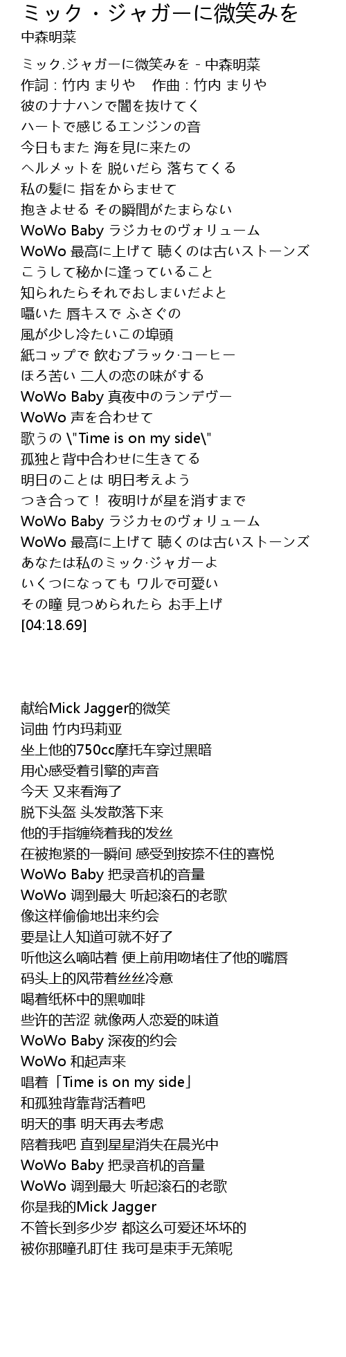 | [03:50.29] | あなたは私のミック·ジャガーよ |