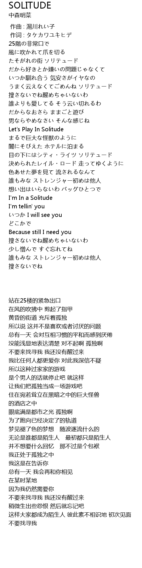 うまく云えなくてごめんね ソリテュード |
