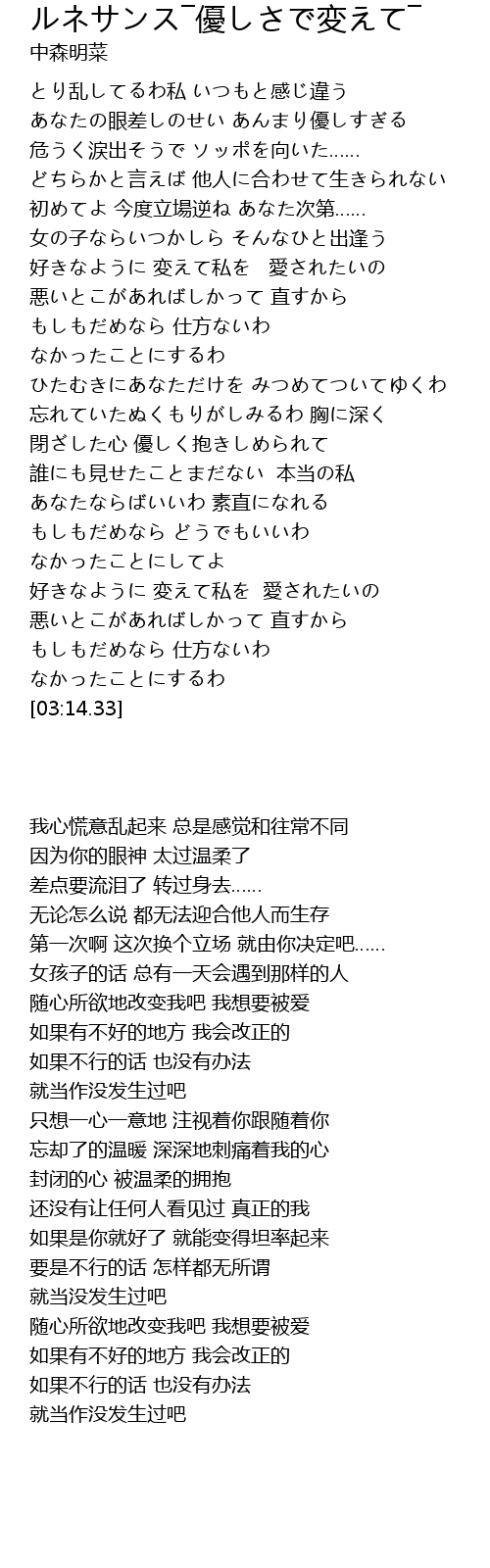 | [02:43.41] | 好きなように 変えて私を 愛されたいの |