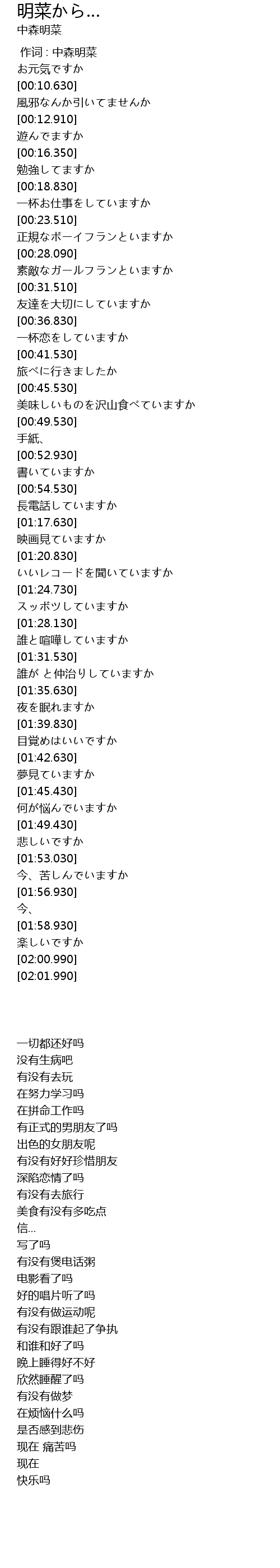 | [00:00.00] | zuò cí : zhōng sēn míng cài |