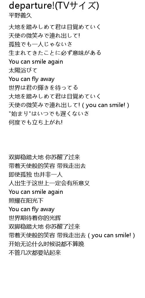 | [00:56.365] | 天使の微笑みで連れ出して!(you can smile!) |