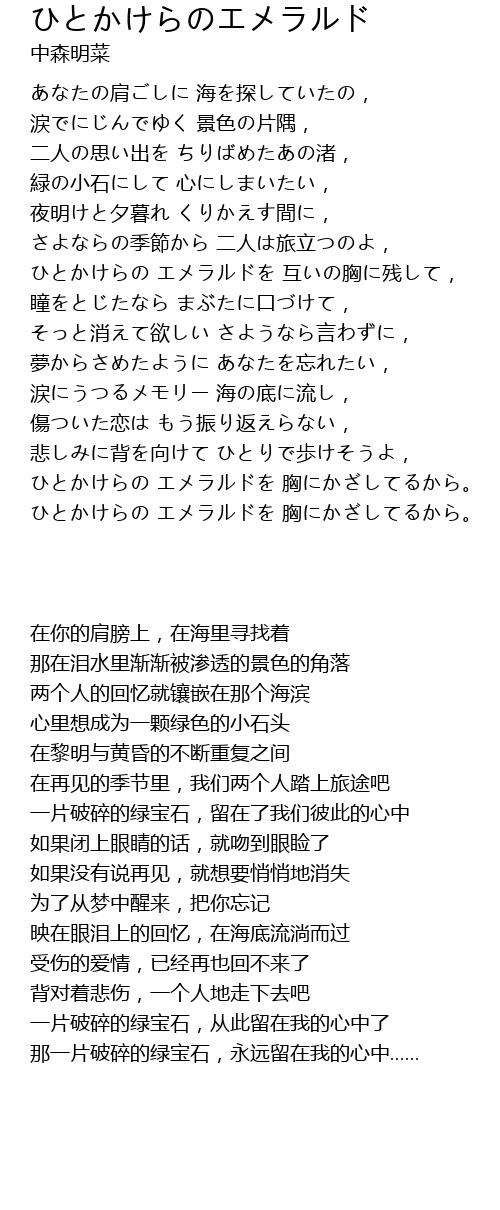 ひとかけらの エメラルドを 互いの胸に残して, |