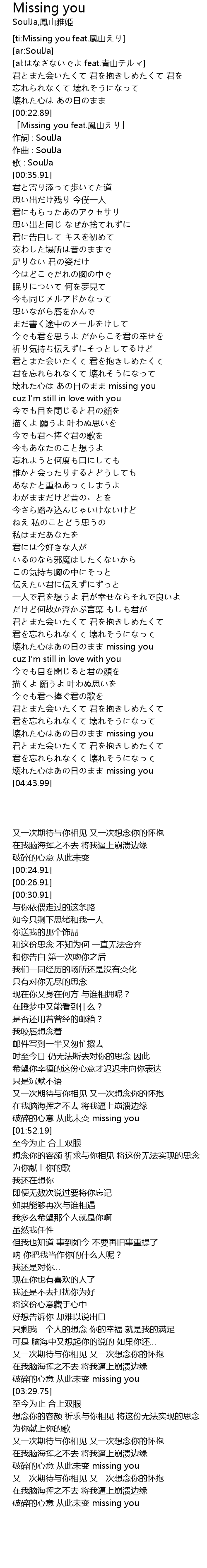 | [ti:Missing you feat.鳳山えり] | |