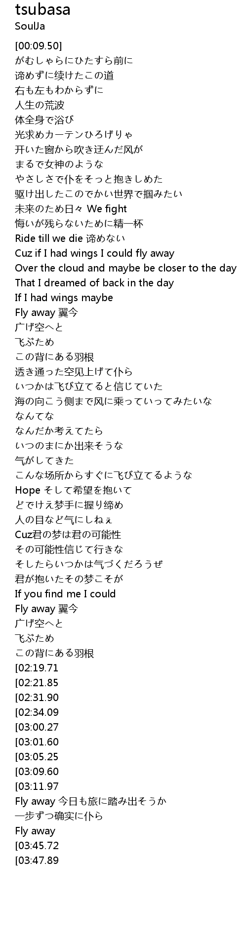 | [03:17.89][03:01.60] | Fly away 翼今 |
