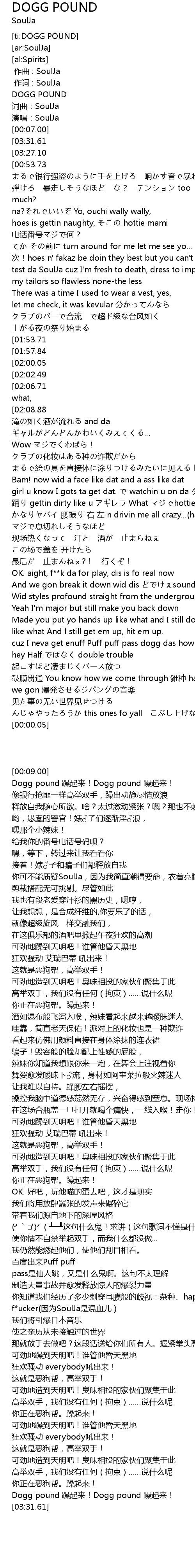 | [01:02.29][02:00.05][02:57.81][03:15.59] | dis da Dogg pound ぶちあげるぜ |