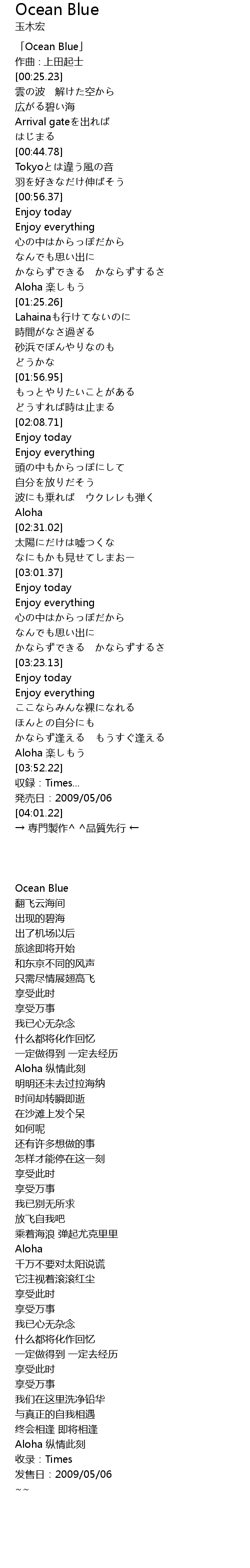 | [00:01.23] | 「Ocean Blue」 |