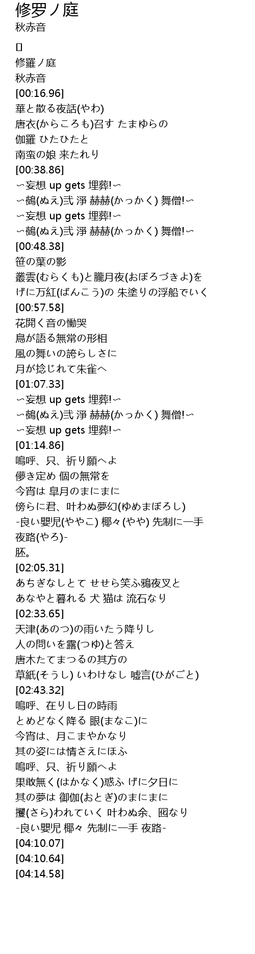 | [00:00.49] | 修羅ノ庭 |
