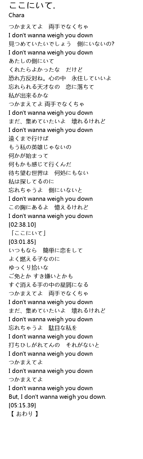 | [05:08.74] | But, I don' t wanna weigh you down. |