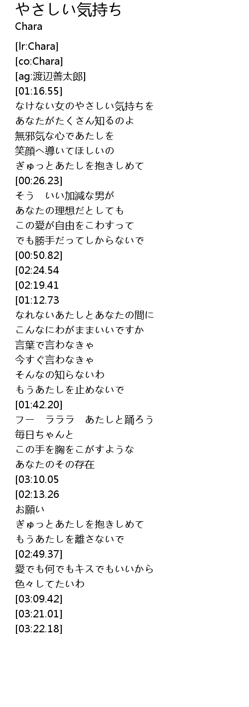 | [00:00.00] | なけない女のやさしい気持ちを |