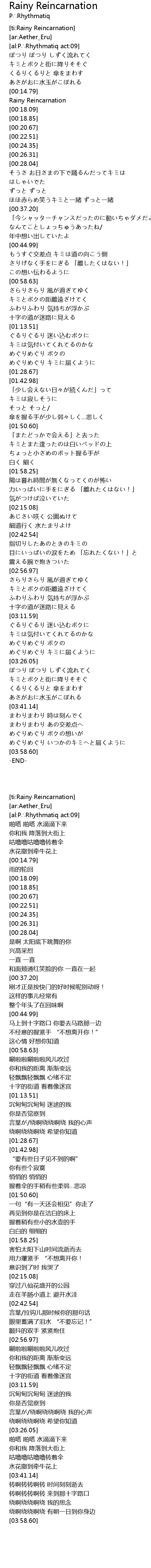 | [00:00.15] | ぽつり ぽつり しずく流れてく |