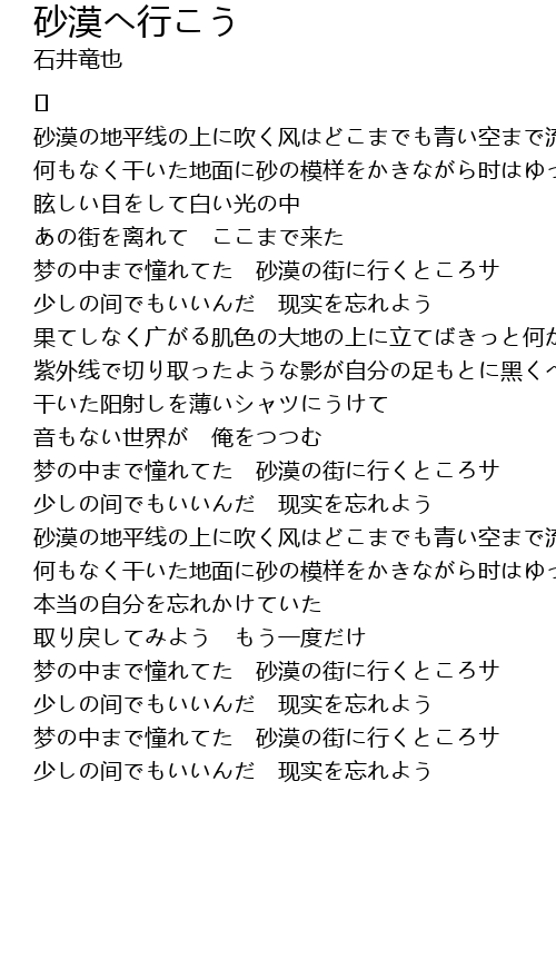 | 梦の中まで憧れてた 砂漠の街に行くところサ | |