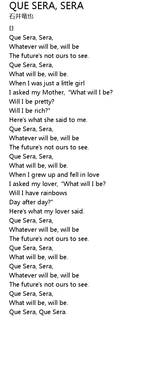 | Que Sera, Que Sera. |
