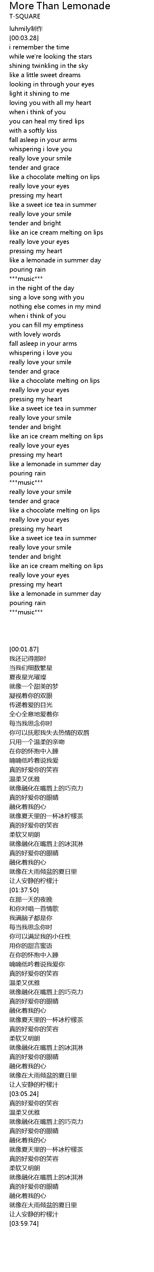 | [03:51.34] | like a lemonade in summer day |