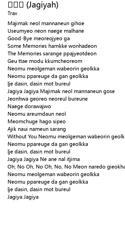 | Jagiya Jagiya Majimak neol mannaneun gose | |