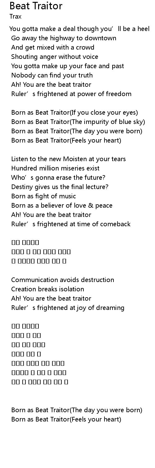 | Born as Beat Traitor Feels your heart | |