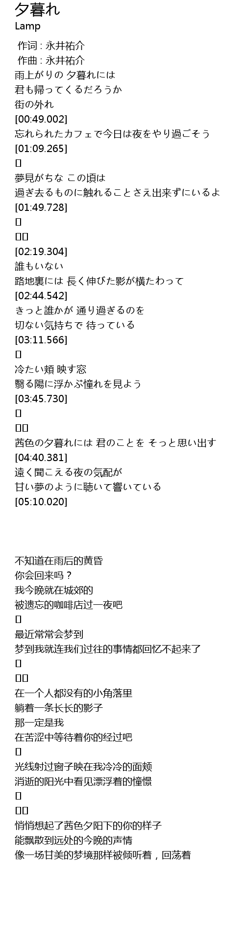 | [04:15.857] | 茜色の夕暮れには 君のことを そっと思い出す |