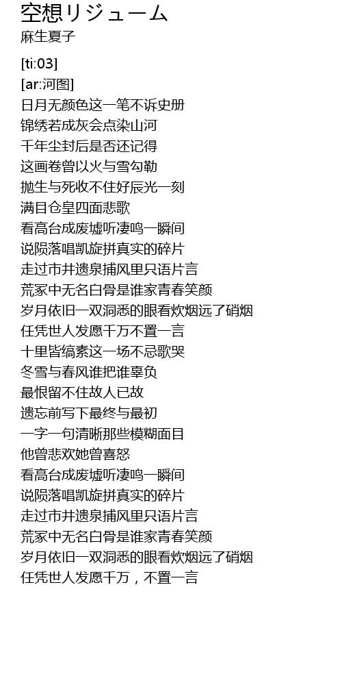 | [03:15.61] | 看高台成废墟听凄鸣一瞬间 |