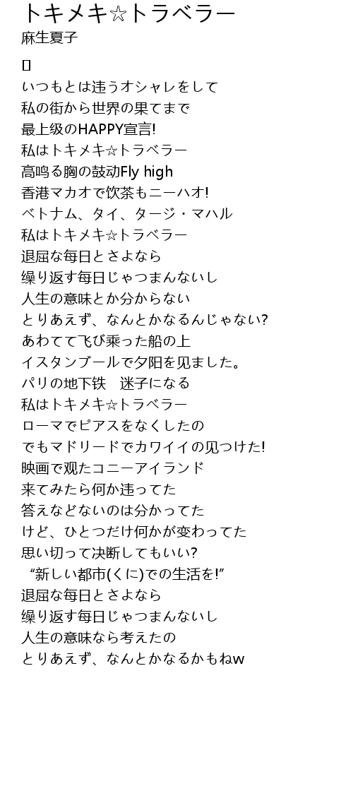 | Song | トキメキ☆トラベラー |