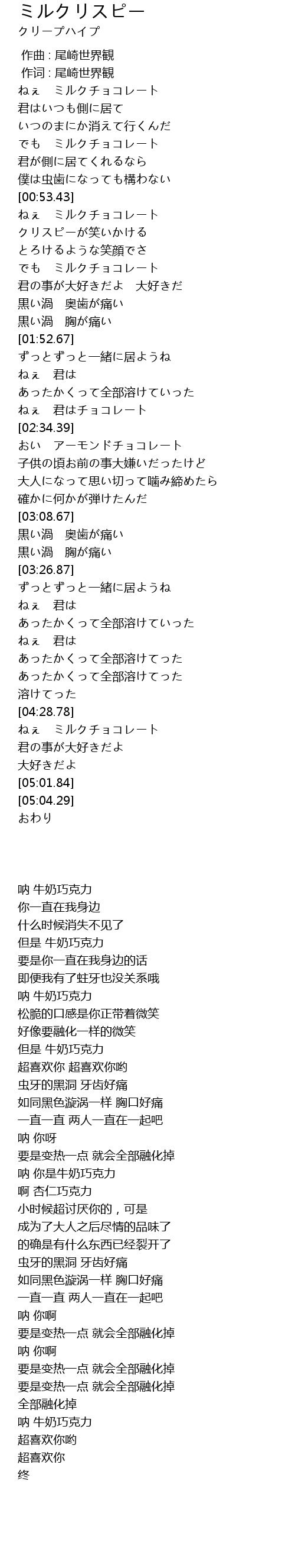 | [04:42.07] | ねぇ ミルクチョコレート |
