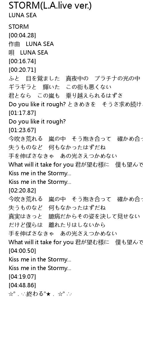 | [04:00.87] | Kiss me in the Stormy... |