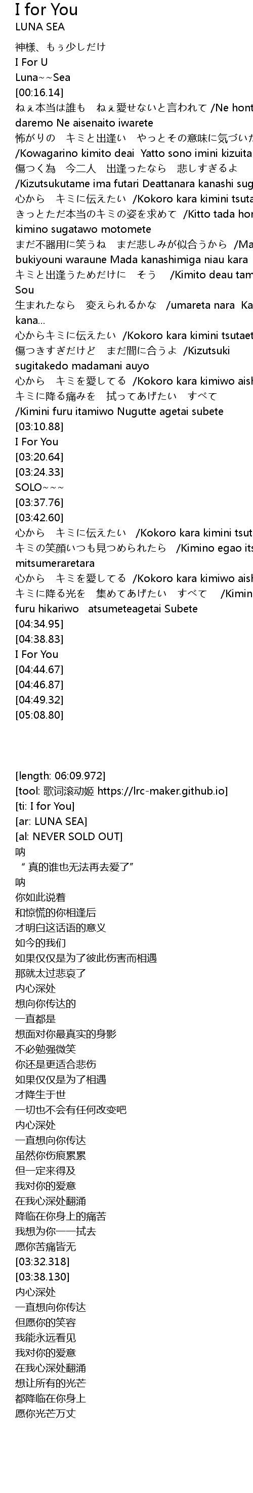 | [03:16.69] | I For You |