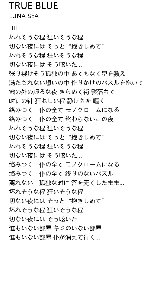 | 张り裂けそう孤独の中 あてもなく星を数え | |
