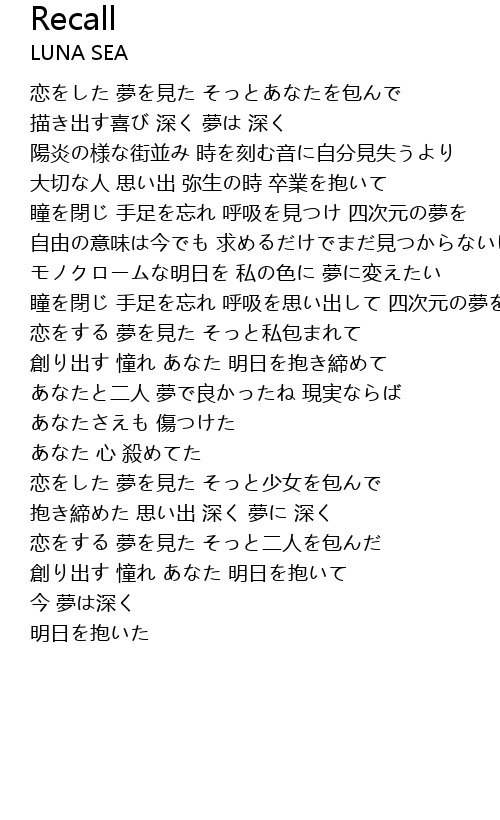 | 抱き締めた 思い出 深く 夢に 深く | |