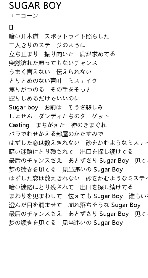 | まわりを见まわして 怯えても Sugar Boy 谁もいない | |