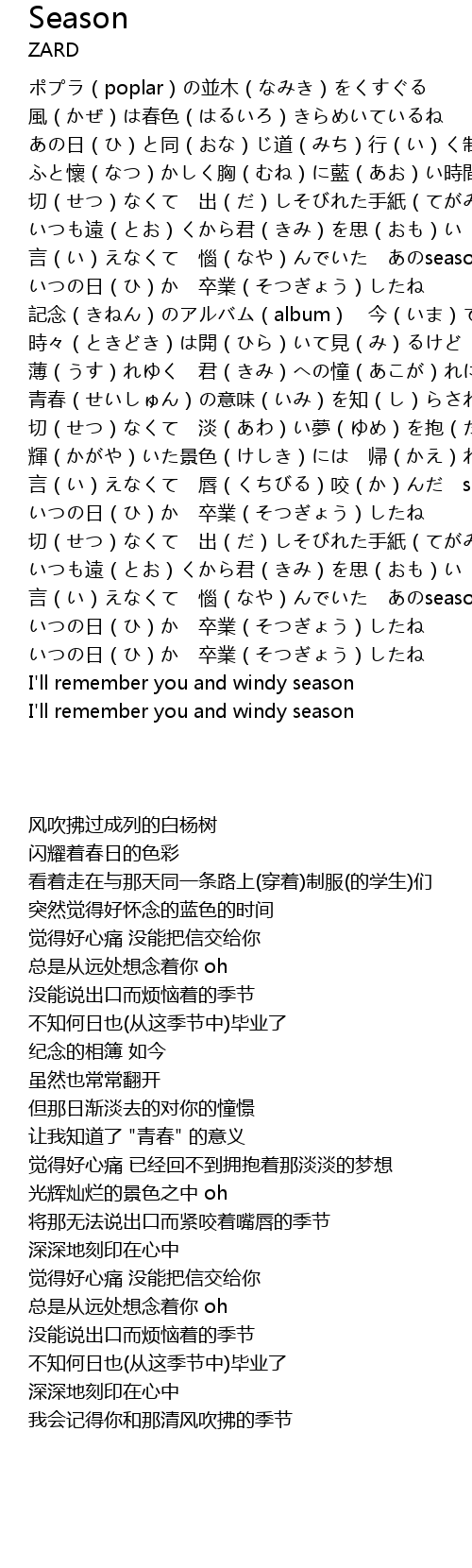 | [03:15.20] | 言(い)えなくて 惱(なや)んでいた あのseason |