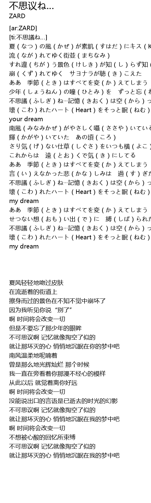 | [02:36.37] | 不思議(ふしぎ)ね···記憶(きおく)は空(から)っぽにして |