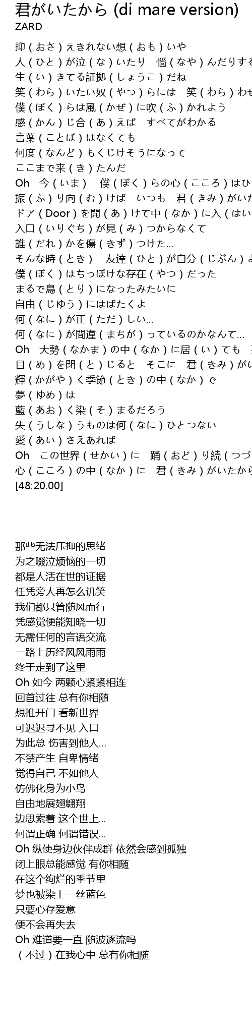 | [01:22.53] | 振(ふ)り向(む)けば いつも 君(きみ)がいたから |