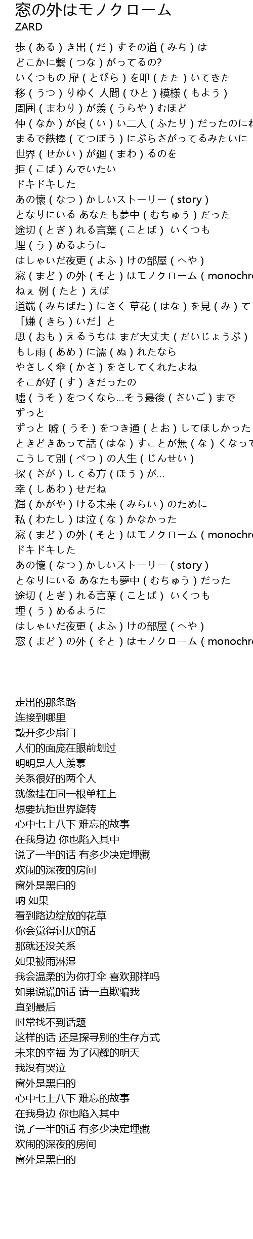 | [03:42.47] | 窓(まど)の外(そと)はモノクローム(monochrome) |