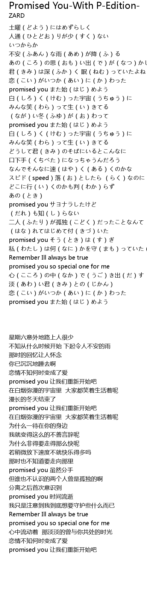 | [03:55.01] | promised you そう(とき)は(す)ぎ |