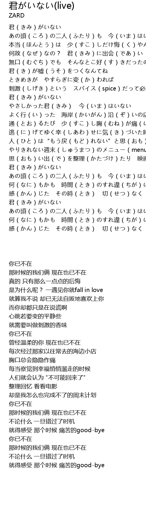 | [02:19.52] | あの頃(ころ)の二人(ふたり)も 今(いま)はいない |