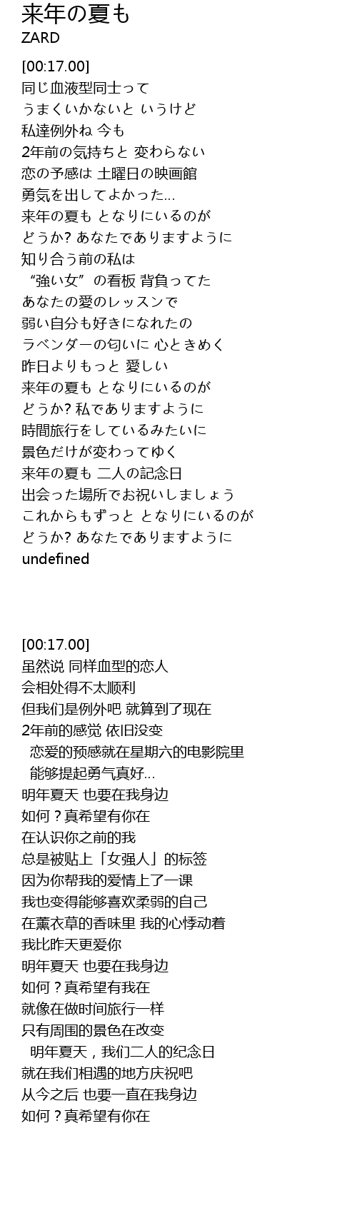 | [03:21.62] | 来年の夏も 二人の記念日 |