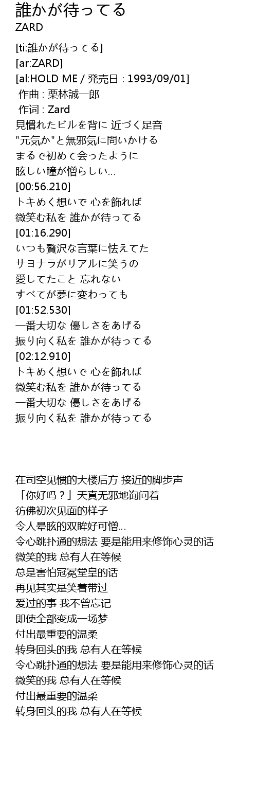 | [03:00.760] | 振り向く私を 誰かが待ってる |