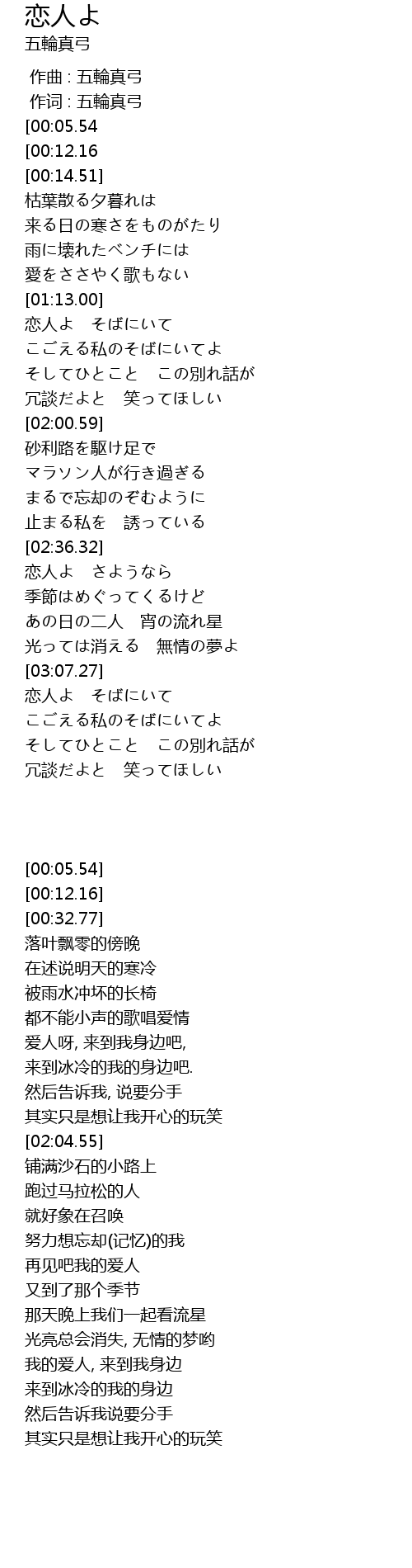 | [00:32.77][00:12.16] | 作曲者名 五輪真弓 |